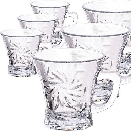 Набор из 6-ти кружек с ручкой выполнен из высококачественного стекла. Стильный набор кружек предназначен для подачи горячих и холодных напитков. Толстое широкое дно обеспечивает стаканам устойчивость. Оригинальный дизайн, уникальная форма, прозрачные стенки придают набору невероятную эстетичность. Стаканы подойдут для повседневного использования как в домашних условиях, так и в местах общественного питания (кафе, бары, рестораны). Посуда обладает непористой поверхностью, не впитывает запахи, легко моется. Подходит для мытья в посудомоечной машине.