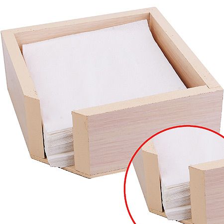 Оригинальная салфетница изготовлена из МДФ с отделкой под светлое дерево. Конструкция салфетница позволяет извлекать салфетки одной рукой, благодаря специальному проёму сбоку, при этом салфетки не рассыпаются и не разлетаются в разные стороны. Салфетница подойдет для стандартных салфеток 24х24 см (12х12 см в сложенном виде). Благодаря жесткой конструкции салфетница прочно стоит на столе. Салфетница проста в обращении, не занимает много места на кухне.