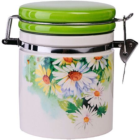 Банка для сыпучих продуктов 500 мл Ромашки доломит/металл 30756 LORAINE - это идеальное решение для хранения кофейных зерен, чая, сахара, крупы, кофе, соли, муки и многих других. Изготовлена из качественной БИО и ЭКО доломитовой керамики и украшена красивым цветочным рисунком. Герметичная откидная крышка с силиконовым кольцом позволит сохранить максимальную свежесть с помощью зажима easy seal, быстро и без усилий зафиксирует контейнер, не допуская попадания воздуха, света и влаги.