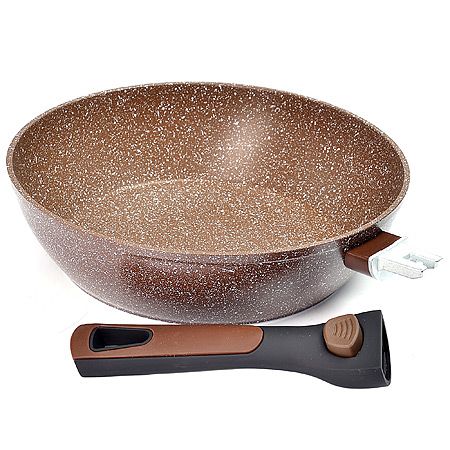 Удобная и универсальная сковородка из литого алюминия, идеально подходит для жарки и тушения на всех типах плит: газовой, индукционной, электрической, керамической, галогеновой. Позволяет использовать ее, как жаровню или сотейник в духовом шкафу. Керамическое покрытие из мраморной крошки, без вредных соединений и примесей, не даст блюду подгореть даже если готовить при сильном жаре.