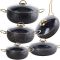 Кастрюли с крышками не только являются незаменимыми в плане варки и тушения, но также могут быть использованы как сковороды, позволяя вам обжаривать продукты прямо внутри кастрюль. Мраморное антипригарное покрытие позволяет готовить практически не используя масло, что значительно увеличивает полезность приготовляемой еды.