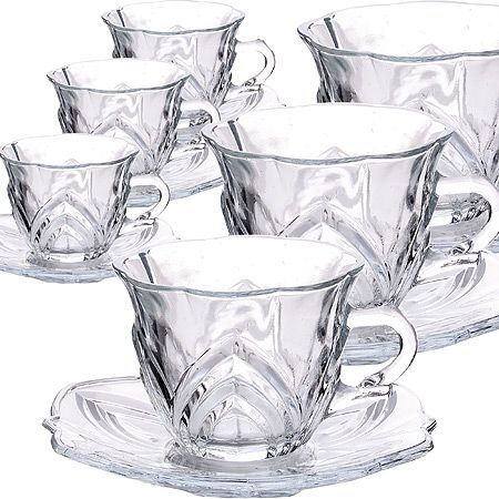 Набор из 6-ти чайных пар выполнен из высококачественного стекла. Стильный набор предназначен для подачи горячих и холодных напитков. Оригинальный дизайн, уникальная форма, прозрачные стенки придают набору невероятную эстетичность. Чашки подойдут для повседневного использования как в домашних условиях, так и в местах общественного питания (кафе, бары, рестораны). Посуда обладает непористой поверхностью, не впитывает запахи, легко моется.