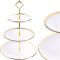 Конфетница состоит из трех тарелок-ярусов разного размера, предназначенных для сервировки конфет, фруктов и десертов. Оригинальный орнамент на блюдах конфетницы придаст вашему столу особый шарм. Центральная стойка из металла обеспечивает надежность и устойчивость конструкции.