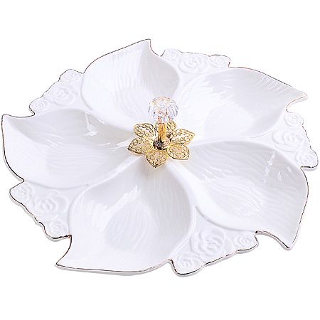 Элегантная менажница LORAINE это красивая посуда для сервировки, секционная тарелка, функциональная миска для дома. С нашей посудой сервировка будет вас радовать. Менажница фарфоровая оригинальной формы, состоящая из 5 секций. Менажница керамика подходит для сервировки и подачи как закусок, так и сладостей. Тарелка для сыра изготовлена из фарфора. Менажница фарфор можно использовать как сырная тарелка, тарелка секционная. Менажница для сыра поможет создать собственный, неповторимый стиль. Менажница белая подходит подойдёт для закусок, сухофруктов, снеков, соусов, а также для орехов менажница. Тарелка для нарезки понадобится для организации любого стола. Менажница для орехов подойдет для варенья, меда и конфет. Менажница керамическая подойдет для специй, подайте их на стол к мясным блюдам. Менажница большая, менажница глубокая имеет очень вместительные секции. Менажница для фруктов подойдет для нарезки фруктов и овощей. Менажница керамика белая настоящее украшение любого стола. Менажница фарфоровая отличный подарок маме, подарок сестре, подарок подруге, бабушке!