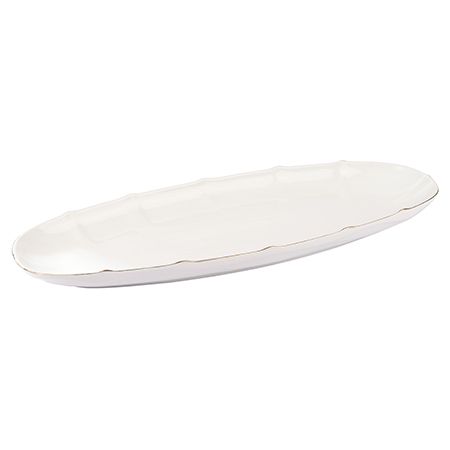 Золотая окантовка добавляет изысканности и шарма, делая блюдо для подачи ещё более привлекательным. Размеры 40x14,5х3,5 см обеспечивают удобное размещение на столе, а благодаря своему дизайну сервировочная тарелка легко впишется в любой интерьер кухни или столовой зоны. Благодаря возможности использования в посудомоечной машине без потери качества, уход за этим блюдом становится максимально простым и удобным. Практичность и удобство использования делают его незаменимым помощником на кухне.