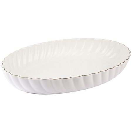 Элегантное блюдо сервировочное LORAINE станет ярким акцентом на праздничном столе или уютной вечеринке. Изготовленное из высококачественного фарфора, оно идеально подходит для подачи разнообразных закусок, фруктов, овощей, выпечки, десертов, печенья, сыров, салатов, а также шашлыка, плова, картофеля, блюд из рыбы и мяса и многого другого. Экологически чистый фарфор гарантирует долговечность и эстетическую привлекательность изделия. Золотая окантовка добавляет изысканности и шарма, делая блюдо для подачи ещё более привлекательным.