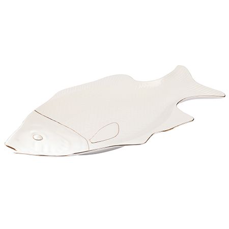 Золотая окантовка добавляет изысканности и шарма, делая блюдо ещё более привлекательным. Блюдо для рыбы имеет размеры 40,5x22,5х3,5 см, которые обеспечивают удобное размещение на столе, а благодаря своему дизайну сервировочная тарелка легко впишется в любой интерьер кухни или столовой зоны. Благодаря возможности использования в посудомоечной машине без потери качества, уход за этим блюдом становится максимально простым и удобным.