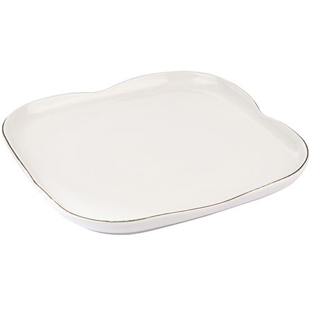 Экологически чистый фарфор обеспечивает долговечность изделия, а золотистая окантовка добавляет ему изысканности и элегантности. Размеры блюда - 26,5x26,5x2,5 см, что делает его удобным для размещения на столе. Стильный дизайн позволяет легко вписать его в любой интерьер кухни или столовой.