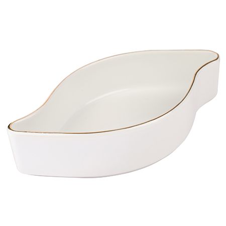 Элегантное блюдо сервировочное станет ярким акцентом на праздничном столе или уютной вечеринке. Изготовленное из высококачественного фарфора, оно идеально подходит для подачи разнообразных закусок, фруктов, овощей, выпечки, десертов, печенья, сыров, а также многого другого. Экологически чистый фарфор гарантирует долговечность и эстетическую привлекательность изделия. Золотая окантовка добавляет изысканности и шарма, делая блюдо для подачи ещё более привлекательным. Размеры 18х10х4 см обеспечивают удобное размещение на столе, а благодаря своему дизайну сервировочная тарелка легко впишется в любой интерьер кухни или столовой зоны. Благодаря возможности использования в посудомоечной машине без потери качества, уход за этим блюдом становится максимально простым и удобным. Практичность и удобство использования делают его незаменимым помощником на кухне. Это сервировочное блюдо станет прекрасным подарком для любителей красивой сервировки или тех, кто ценит эстетику в оформлении стола. Оно добавит изысканности и уюта любому столу и будет радовать своего обладателя и гостей на протяжении долгого времени.