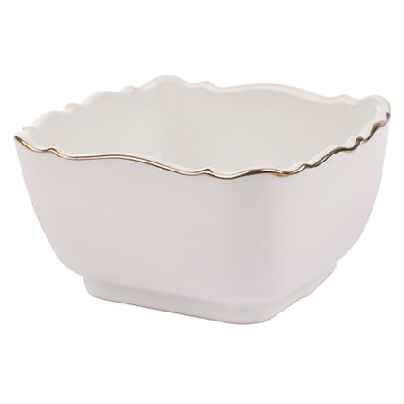 Элегантное блюдо сервировочное станет ярким акцентом на праздничном столе или уютной вечеринке. Изготовленное из высококачественного фарфора, оно идеально подходит для подачи разнообразных закусок, фруктов, овощей, выпечки, десертов, печенья, сыров,а также многого другого. Экологически чистый фарфор гарантирует долговечность и эстетическую привлекательность изделия. Золотая окантовка добавляет изысканности и шарма, делая блюдо для подачи ещё более привлекательным. Размеры 9х9х5 см обеспечивают удобное размещение на столе, а благодаря своему дизайну сервировочная тарелка легко впишется в любой интерьер кухни или столовой зоны. Благодаря возможности использования в посудомоечной машине без потери качества, уход за этим блюдом становится максимально простым и удобным. Практичность и удобство использования делают его незаменимым помощником на кухне. Это сервировочное блюдо станет прекрасным подарком для любителей красивой сервировки или тех, кто ценит эстетику в оформлении стола. Оно добавит изысканности и уюта любому столу и будет радовать своего обладателя и гостей на протяжении долгого времени.