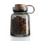 Банка выполнена из дымчатого выдувного стекла, которое защищает содержимое от солнечного света, сохраняя ароматы и цвета. Изделие оснащено удобной, плотно закрывающейся дубовой пробкой, которая прикреплена к горлышку с помощью кожаного ремешка.