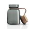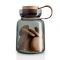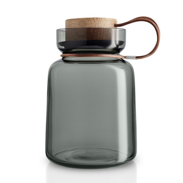 Банка выполнена из дымчатого выдувного стекла, которое защищает содержимое от солнечного света, сохраняя ароматы и цвета. Изделие оснащено удобной, плотно закрывающейся дубовой пробкой, которая прикреплена к горлышку с помощью кожаного ремешка.