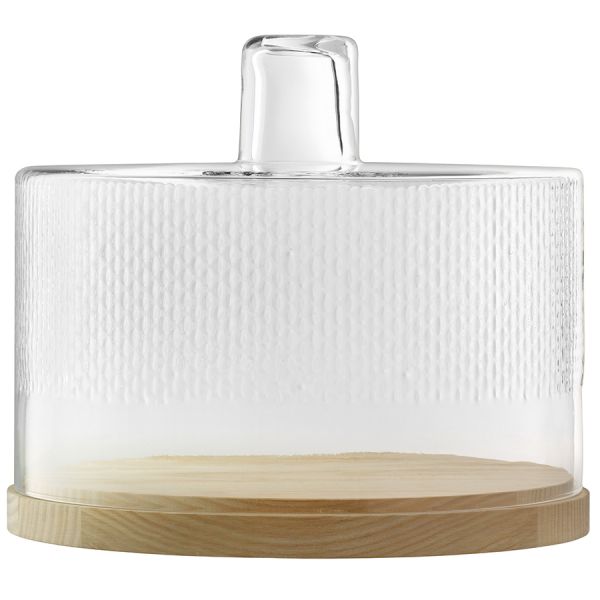 Деревянное блюдо с крышкой из выдувного стекла отлично подойдет для подачи сыра, торта или выпечки. Текстура изделия напоминает плетение из лозы. Деревянное блюдо выполнено из экологически чистого европейского ясеня, сертифицированного FSC (Лесным попечительским советом).