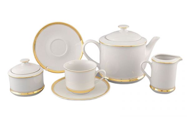 Чайный сервиз Сабина золотая отводка 02160725-0511 LEANDER - это изысканный набор для чаепития, который подчеркнет ваш стиль и вкус. Этот сервиз отличается не только качественными материалами и прочностью, но и элегантным дизайном, который придется по вкусу ценителям изысканных вещей.