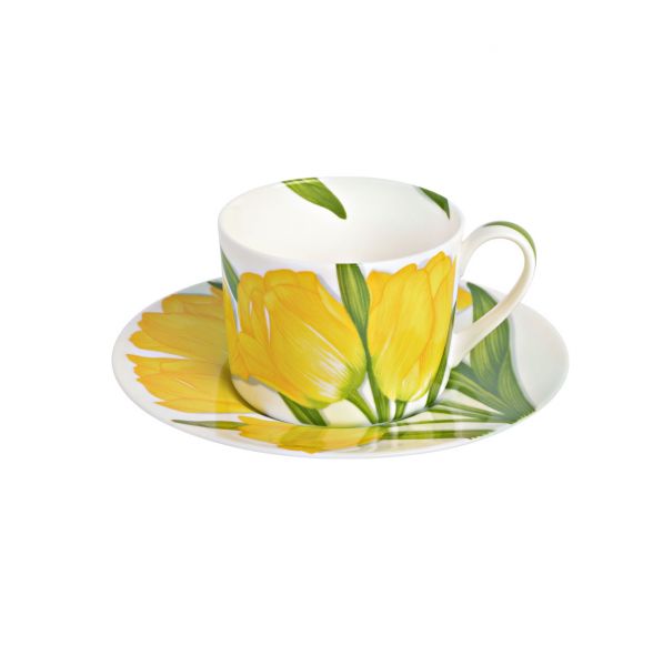 Чашка с блюдцем чайная Flower yellow объединяет в себе красоту и функциональность. Дизайн коллекции FREEDOM включает в себя все краски природы: листья, цветы, овощи, фрукты, деревья, трава и бабочки. Эта коллекция является истинным манифестом СВОБОДЫ, позволяя создавать новые и удивительные сочетания каждый день.