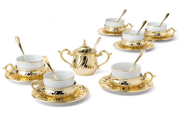 Чайный набор на 6 персон Stradivari с отделкой под золото в подарочной коробке - это элегантное и роскошное решение для настоящих ценителей чая. Каждая деталь этого набора выполнена с особым вниманием к дизайну и качеству материалов. Строгие линии и изысканный узор делают этот набор по-настоящему уникальным.