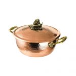 Кастрюля 2л медная с лужением кованая с крышкой Чеснок С72108/5 - это идеальное решение для тех, кто ценит качество и надежность. Заварная крышка плотно прилегает к кастрюле, что позволяет сохранить все вкусовые качества блюд. Благодаря медному покрытию и лужению, кастрюля прекрасно сохраняет тепло и равномерно распределяет его по всей поверхности.