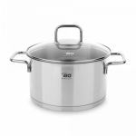 Кастрюля снабжена прочной стеклянной крышкой, которая позволяет контролировать процесс приготовления пищи, не открывая ее. Благодаря удобными ручками на крышке и корпусе, вы сможете без труда перемещать кастрюлю с плиты на стол.