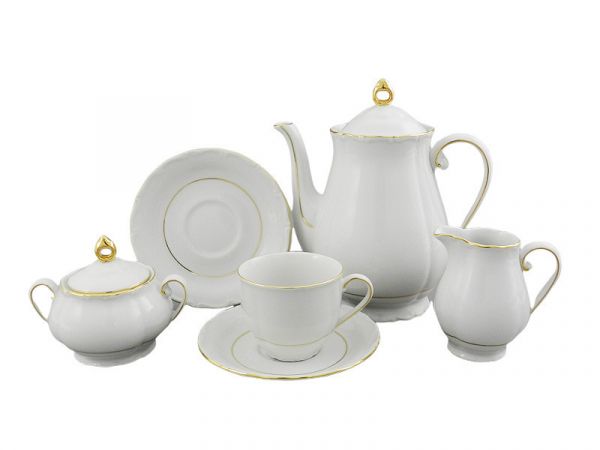 Кофейный сервиз 'Верона' с золотой отводкой от LEANDER - это идеальное сочетание изысканности и функциональности. Этот набор состоит из 15 предметов, предназначенных для обслуживания 6 человек. Каждая деталь сервиза прекрасно дополнит ваш стол и создаст уютную атмосферу для чашки ароматного кофе.