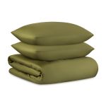 Качественная отделка и прочные швы гарантируют долгий срок службы, сохраняя привлекательный вид даже после многократных стирок. Комплект включает пододеяльник размером 150х200 см и две наволочки 50х70 см, выполненные в элегантном оливковом цвете. Уход за этим комплектом прост и не требует особых усилий, следуйте приведенным рекомендациям, чтобы сохранить его безупречный вид.
