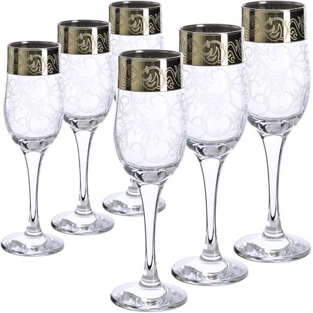 Набор бокалов для шампанского выполнен из высококачественного стекла и декорирован гравировкой. Набор состоит из 6 ти стаканов объемом 200 мл. Предназначены для холодных напитков. Оригинальность оформления изделий придется по вкусу всем без исключения. Такой набор послужит отличным подарком к празднику, а также добавит элегантности любому праздничному столу! Стаканы не впитывают запахи, легко моются.