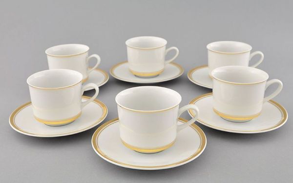 Набор чайных пар Сабина 6 шт Золото 02160415-0511 LEANDER - это изысканный набор посуды, который станет отличным дополнением к вашему чайному сервизу. Каждая чашка и блюдце изготовлены из высококачественного фарфора, который обладает прочностью и долговечностью. Дизайн набора выполнен в классическом стиле с золотистыми узорами, что придает ему изысканность и шарм.