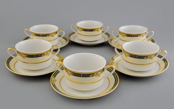 Набор чашек для супа LEANDER изготовлен из высококачественного чешского фарфора, который отличается прочностью и изысканным дизайном. Красивый узор 'Золотые фрукты' Сабина придаст вашему столу особую изысканность и шарм.