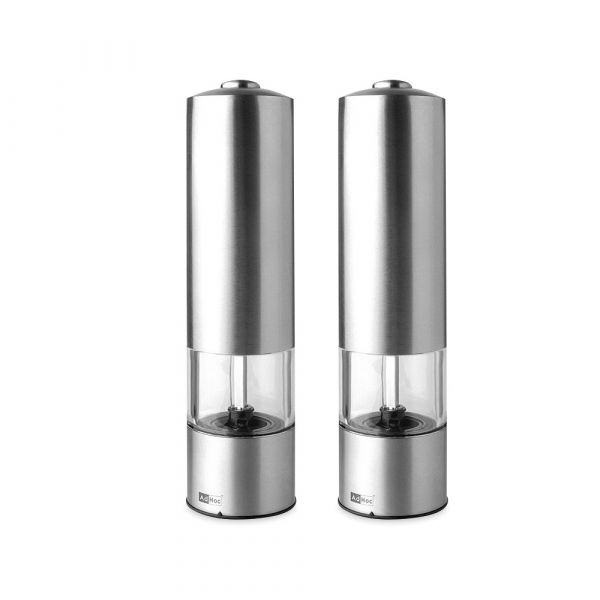 Электронные мельницы более практичны и не требуют приложения сил. Они работают от небольшого мотора, который запускает вращение жерновов. Подобная технология дает возможность быстро измельчить большое количество соли или перца до самого мелкодисперсного состояния. Posudaplanet.ru предлагает вам приобрести набор электрических мельниц для перца и соли 19 см ADHOC PEPMATIK с подсветкой, чтобы сделать вашу кулинарную жизнь еще более удобной и приятной.