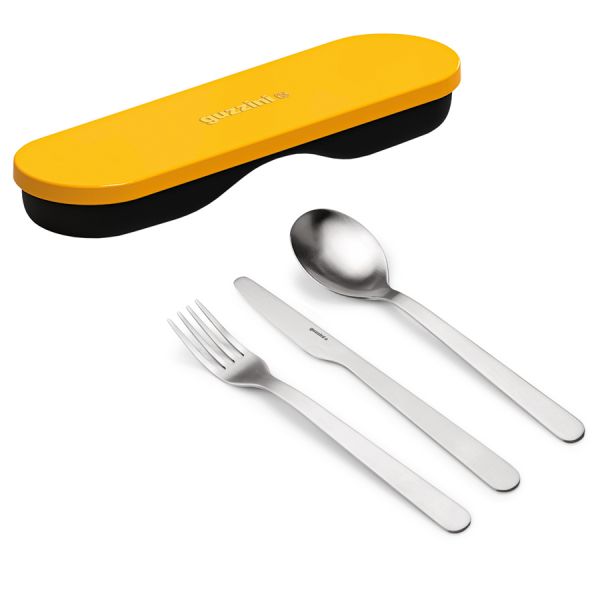 Компактный набор из 3 столовых приборов в футляре On The Go поможет насладиться завтраком или обедом в офисе, в университете, на пикнике или в поездке. В комплект входит ложка, вилка и нож из высококачественной нержавеющей стали. Изделия можно мыть в посудомоечной машине. Благодаря удобному футляру столовые приборы будут защищены от загрязнения и не затеряются в сумке или рюкзаке.