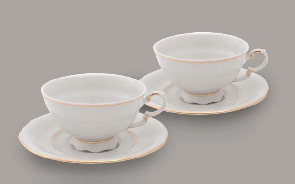 Набор из двух чайных пар 200 мл Золотая отводка 07140425-1139 LEANDER - это элегантное и стильное решение для сервировки чая в вашем доме. Каждая чайная пара выполнена из высококачественного фарфора с золотистой отводкой, которая придает им особый шарм и изысканность. Этот набор станет отличным дополнением к вашему чайному сервизу и порадует вас и ваших гостей своим прекрасным внешним видом и функциональностью.