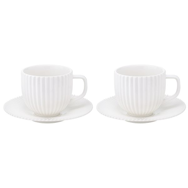 Набор из двух чайных пар белого цвета подойдет как для праздничной сервировки, так и для ежедневного чаепития. Рифленая поверхность блюдец красиво отражает свет, а чашки удобно ложатся в руку. Посуда сделана из фарфора — надежного и прочного материала, который не пожелтеет, не поцарапается и будет каждый день радовать своим превосходнвм внешним видом. Чайные пары можно дополнить другими предметами из серии Edge — например, тарелками, салатниками или подставками для яиц. Размеры чашки: 8,5х11х8 см. Размеры блюдца: 15х15х1,5 см. Объем: 250 мл. Материал: фарфор. • Можно использовать в микроволновой печи • Можно мыть в посудомоечной машине • Можно использовать в духовке при температуре не более 180° C • Можно замораживать