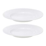 Набор из двух больших тарелок белого цвета подойдет как для праздничной сервировки, так и для обычного ужина в будний день. Фарфоровые борта тарелок имеют рифленую поверхность и оригинальный зубчатый край, что добавляет им утонченности и изящества. При этом они достаточно прочны, чтобы выдерживать мытье в посудомоечной машине, так что ухаживать за ними будет очень просто. С этими тарелками можно составить целый сервиз, добавив к ним другую посуду из серии Edge — например, чашки и салатники. Диаметр: 26 см. Материал: фарфор. • Можно использовать в микроволновой печи • Можно мыть в посудомоечной машине • Можно использовать в духовке при температуре не более 180° C • Можно замораживать