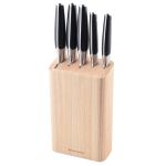 Набор ножей Prime от Smart Solutions отличается своим лаконичным дизайном, который делает его подходящим для любого интерьера. Деревянная подставка не только эстетично выглядит, но и обеспечивает удобное хранение ножей, всегда держа их под рукой. Эргономичные ручки из стали и ABS-пластика обеспечивают комфортное использование и надежный хват, что особенно важно при длительной работе на кухне.