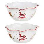 Салатники из новогодней коллекции Magic Moments станут настоящим украшением повседневной и праздничной сервировки. Сказочный принт добавит в любое оформление нотки волшебства, поможет создать за столом теплую и уютную атмосферу. Посуда изготовлена из фарфора – качественного и экологически чистого материала, обеспечивающего долговечность и удобство эксплуатации. Набор прекрасно подойдет в качестве подарка к празднику. Материал: фарфор. Диаметр: 12 см. Высота: 6 см. Количество предметов в наборе: 2 шт. Рекомендуется мыть вручную в теплой воде при помощи жидкого средства или в посудомоечной машине. Не использовать в микроволновой печи.