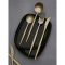 Столовые приборы Globe от дизайнерского бренда Liberty Jones сделают любую сервировку более стильной и утонченной, а каждый прием пищи – особенным. Набор состоит из 16 предметов и включает все необходимое для обслуживания 4-х человек. Особенности и преимущества: - Изделия из высококачественной нержавеющей стали 18/10 отличаются долговечностью и стойкостью к коррозии. - Лезвия ножей изготовлены из нержавеющей стали 13/0, благодаря чему обладают устойчивостью к механическим повреждениям и долго остаются острыми. - Рабочая часть приборов имеет прочное и износостойкое титановое покрытие, которое при этом является самым безопасным. - Округлые формы придают приборам элегантный и в то же время интересный вид. - Аксессуары золотистого цвета привносят в сервировку нотки роскоши и благородства. Материалы: нержавеющая сталь 304 (18/10), нержавеющая сталь 13/0. Длина ножа: 22,5 см. Вес ножа: 61 г. Длина вилки: 22 см. Вес вилки: 69 г. Длина ложки: 21,5 см. Вес ложки: 84 г. Длина чайной ложки: 16 см. Вес чайной ложки: 40 г. Цвет: золотистый матовый. Количество предметов в наборе: 16 шт. Приборы можно мыть в посудомоечной машине.
