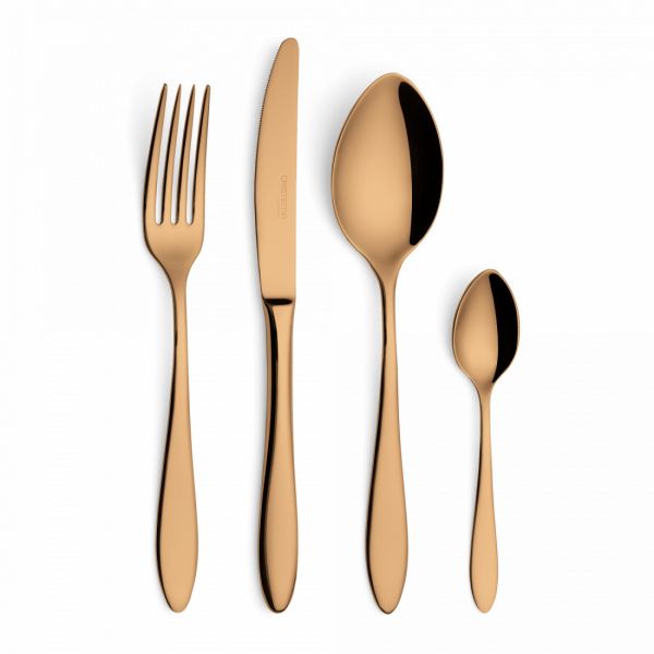 Набор столовых приборов на 6 персон 24 предмета Colombo от CRISTEMA - это идеальное решение для тех, кто ценит качество и стиль. Эти столовые приборы изготовлены из прочного и надежного материала, который прослужит вам долгие годы. Медный цвет придает этому набору особую изысканность и шарм, делая его прекрасным дополнением к любому интерьеру.