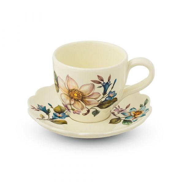Чайная пара Petali di Primavera Nuova Cer - это стильная и качественная керамическая посуда от торговой марки NUOVA CER. Шедевры, вышедшие из-под рук художника, радуют поклонников стильной и качественной посуды. Расписные узоры в виде цветов, листвы и сочных плодов, наполненных ласковым итальянским солнцем, на глазури светлых оттенков создают неповторимую атмосферу уюта и комфорта.