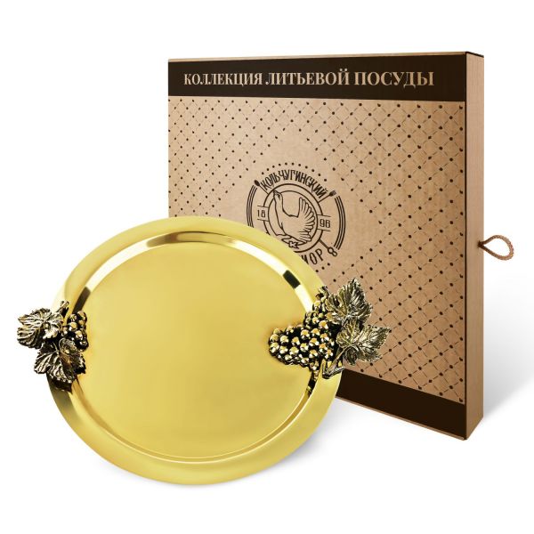 Каждая деталь подноса Виноград выполнена с особой тщательностью, что делает его настоящим произведением искусства. Чернение придает изделию глубину и выразительность, а накладки в виде виноградных лоз создают объем и текстурность. Этот поднос не только функционален, но и является отличным декоративным элементом, который украсит ваш интерьер. Поднос доступен в двух размерах: большом и малом, что позволяет выбрать оптимальный вариант для вашего дома.