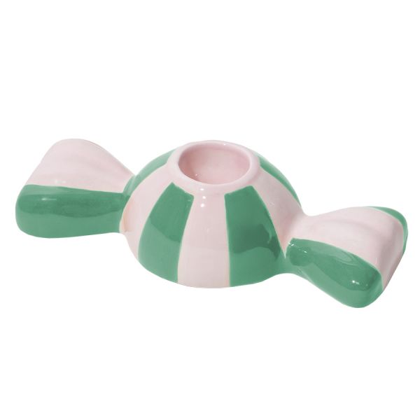 Особенности этого подсвечника делают его неотъемлемой частью любого интерьера. Форма конфеты в обертке с эффектом скрученных кончиков вызывает мгновенную ностальгию и дарит эмоциональную связь с беззаботными моментами жизни. Полосатая структура и глянцевая поверхность изделия создают уютное, мерцающее свечение, которое будет одинаково хорошо смотреться на обеденном столе или на каминной полке в гостиной.