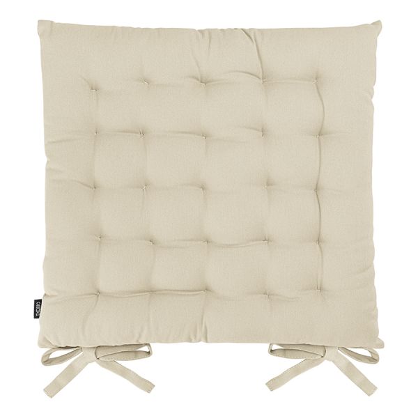 Подушка бежевого цвета из коллекции Essential станет отличным дополнением к вашей кухонной мебели. Ее можно использовать в качестве мягкой накладки на деревянные или металлические стулья, чтобы сделать их жесткую поверхность более удобной для сидения. Подушка легко фиксируется на ножках мебели с помощью специальных завязок. Однотонное изделие в лаконичном дизайне органично вписывается в любой современный интерьер. Чехол подушки изготовлен из экологичного и долговечного 100% хлопка. В качестве наполнителя используется плотный полиэстер, который позволяет изделию сохранять первоначальную форму на протяжении всего срока службы.