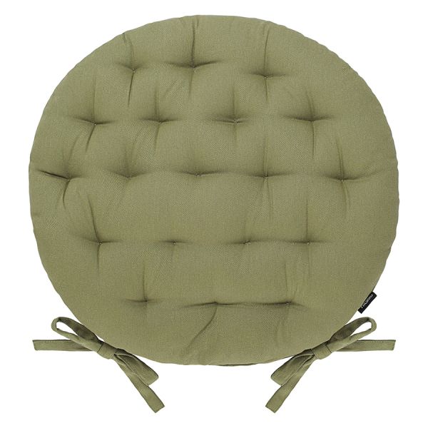 Подушка круглая оливкового цвета из коллекции Essential станет отличным дополнением к вашей кухонной мебели. Ее можно использовать в качестве мягкой накладки на деревянные или металлические стулья, чтобы сделать их жесткую поверхность более удобной для сидения. Подушка легко фиксируется на ножках мебели с помощью специальных завязок. Однотонное изделие в лаконичном дизайне органично вписывается в любой современный интерьер. Чехол подушки изготовлен из экологичного и долговечного 100% хлопка. В качестве наполнителя используется плотный полиэстер, который позволяет изделию сохранять первоначальную форму на протяжении всего срока службы.
