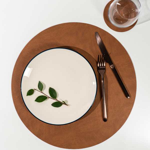 Сервировочная салфетка из натуральной кожи круглая коричневая D38 см Vero — это идеальное решение для тех, кто ценит стиль и практичность в сервировке стола. Изготовленная из прессованной натуральной кожи светло-коричневого оттенка с утончённой фактурой NUPO, эта салфетка не только защищает поверхность стола от царапин, пятен и высокой температуры, но и добавляет элегантности и завершённости вашему интерьеру. Благодаря своему изысканному дизайну, салфетка станет неотъемлемой частью вашего обеденного пространства, подчёркивая ваш утончённый вкус и внимание к деталям. Покупая в Posudaplanet.ru, вы получаете не просто аксессуар, а элемент, который гармонично впишется в ваш дом.