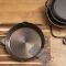 Перед первым применением чугунную сковороду необходимо прокалить для повышения ее антипригарных свойств. Посуду рекомендуется мыть вручную. После очищения следует обработать сковородку высыхающим маслом (льняным, кунжутным и т.п.) и убрать на хранение в сухое место.