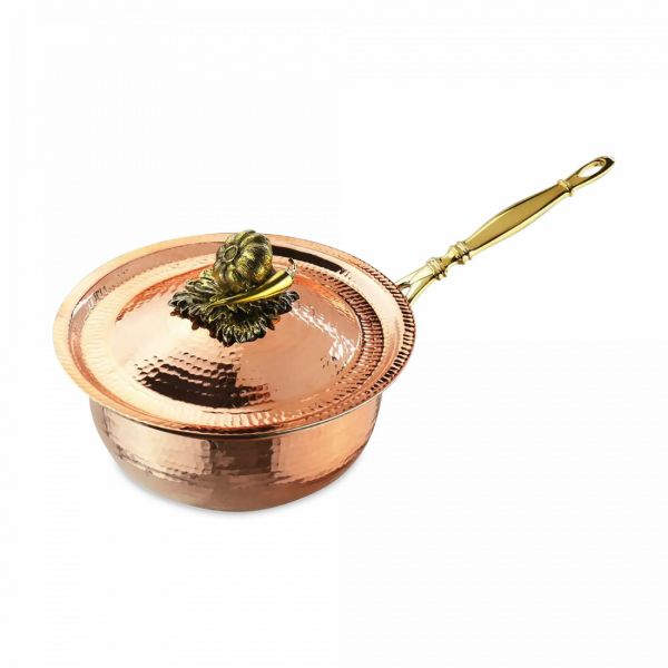 Сотейник медный 1.5 л с крышкой кованый с лужением 'Чеснок' создан для тех, кто ценит в кулинарии не только вкус, но и эстетику приготовления. Медь, как материал, издавна известна своими превосходными теплопроводными свойствами, что делает этот сотейник идеальным выбором для приготовления сложных блюд, требующих точного температурного контроля. Лужение обеспечивает защиту от взаимодействия меди с продуктами, сохраняя их натуральный вкус и аромат.
