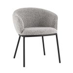Обеденный стул Дон с мягкой полукруглой спинкой и сидением из ткани букле отлично впишется в обеденную зону любой современной кухни. Каркас металлический, ножки выполнены в черном цвете. Дополнительно предусмотрены специальные подпятники, которые предотвращают появление царапин на полу.