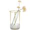 Ваза со стеклянным основанием и латунными элементами отличается стильным и современным дизайном. Ее высоту можно регулировать от 16 см до 24,5 см, что делает ее универсальным решением для различных композиций. Низкое основание облегчает процесс замены воды, а открытая конструкция подчеркивает естественную красоту букета.