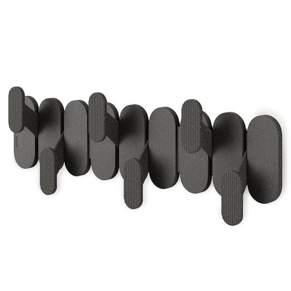 Вешалка настенная Tempo, 6 крючков, черная Umbra, идеально вписывается в любой интерьер, будь то прихожая, спальня или офис. Шахматное расположение крючков позволяет разместить несколько предметов одежды, избегая их соприкосновения и, следовательно, повреждения. Это не только практично, но и добавляет визуальный интерес, превращая обычную вешалку в элемент декора.